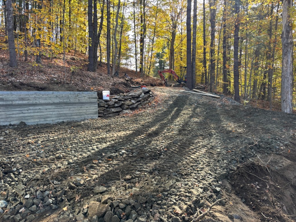 Fully-ensured light excavation and tractor services including, but not limited to: Bush hogging; retaining walls (poured concrete and drystone with fieldstones found onsite); land clearing and lawn/garden expansion; drainage work; stump grinding; driveway construction, ditching and grading and culvert replacement and much more.